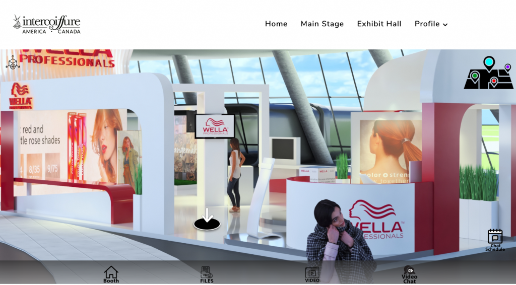 Attendees will choose the main stage to view live or recorded programs scheduled by participating brands. A schedule of events will be listed showing the times of each presenter. Text Chat will be available below the player and the video may be enlarged full screen.